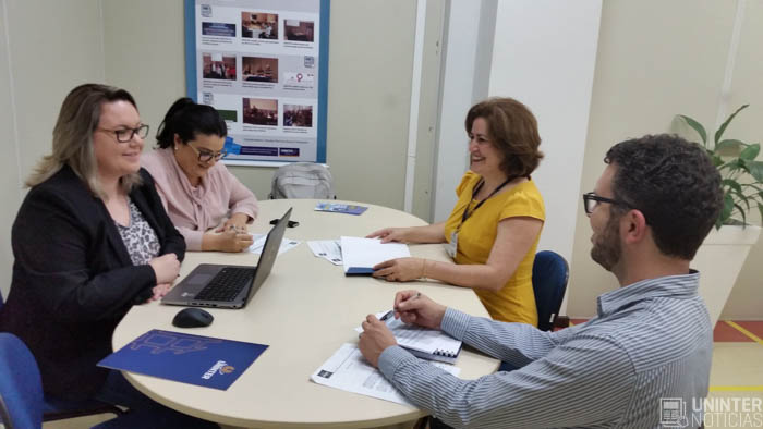 A Coordenação de Extensão e Assuntos Comunitários da UNINTER, representada pela coordenadora Cláudia Patrícia Garcia Pampolini e por Celso Giancarlo Duarte de Mazo, recebeu no dia 14 de outubro, a visita de Marielle Rieping, coordenadora regional do Sebrae (PR) para Startups, e Letícia Gonçalves, integrante da equipe do programa Start It Up e consultora do Sebrae (PR).