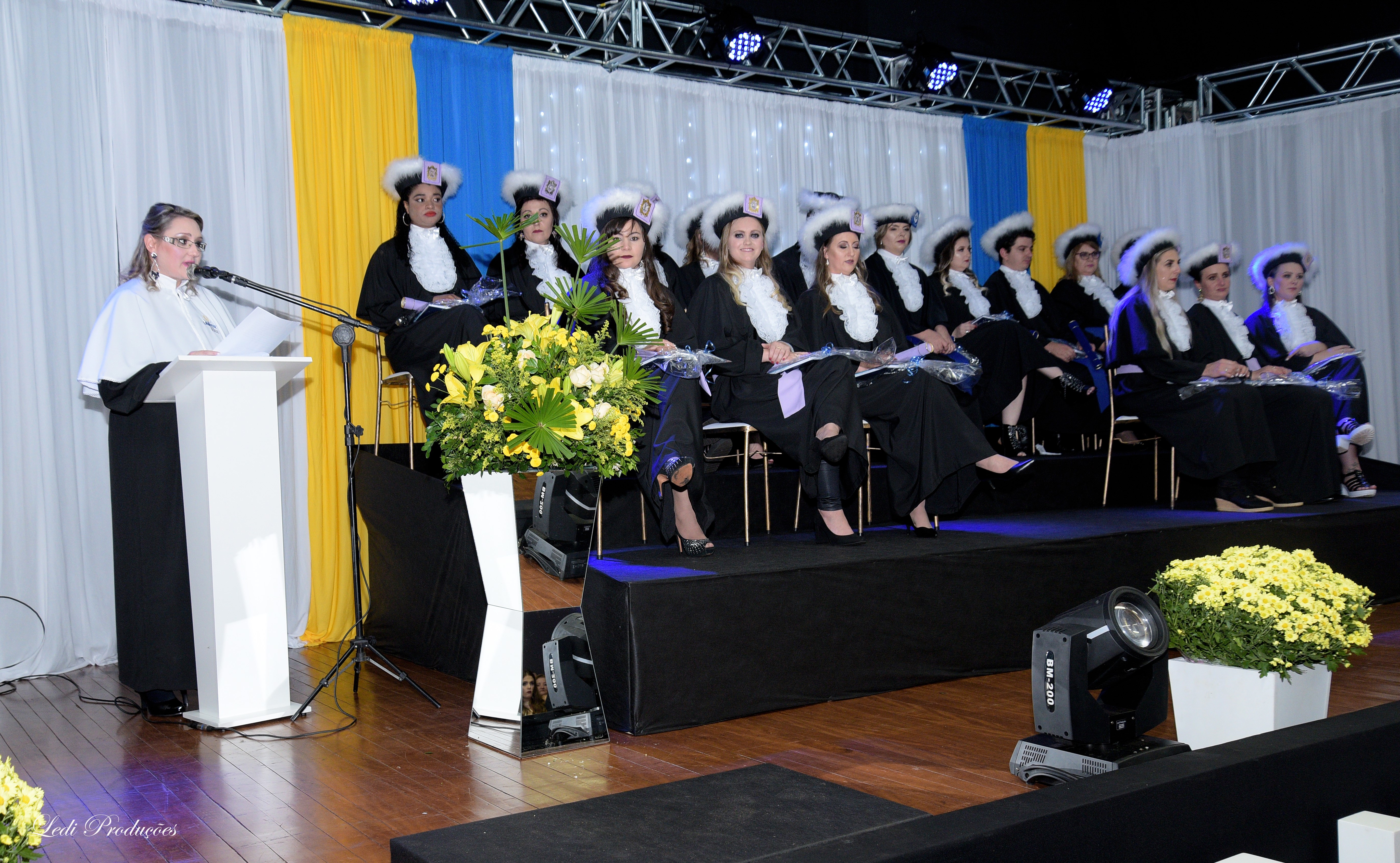 No primeiro momento, o pastor acolheu os 16 formandos com uma palavra de valorização sobre a importância de se ter sonhos e poder torná-los realidade. A seguir, Fernanda declarou aberta a cerimônia de colação de grau e os alunos Ederson Meinertz, Milton Loureiro dos Santos e Débora dos Santos conduziram o juramento junto a seus colegas de curso.