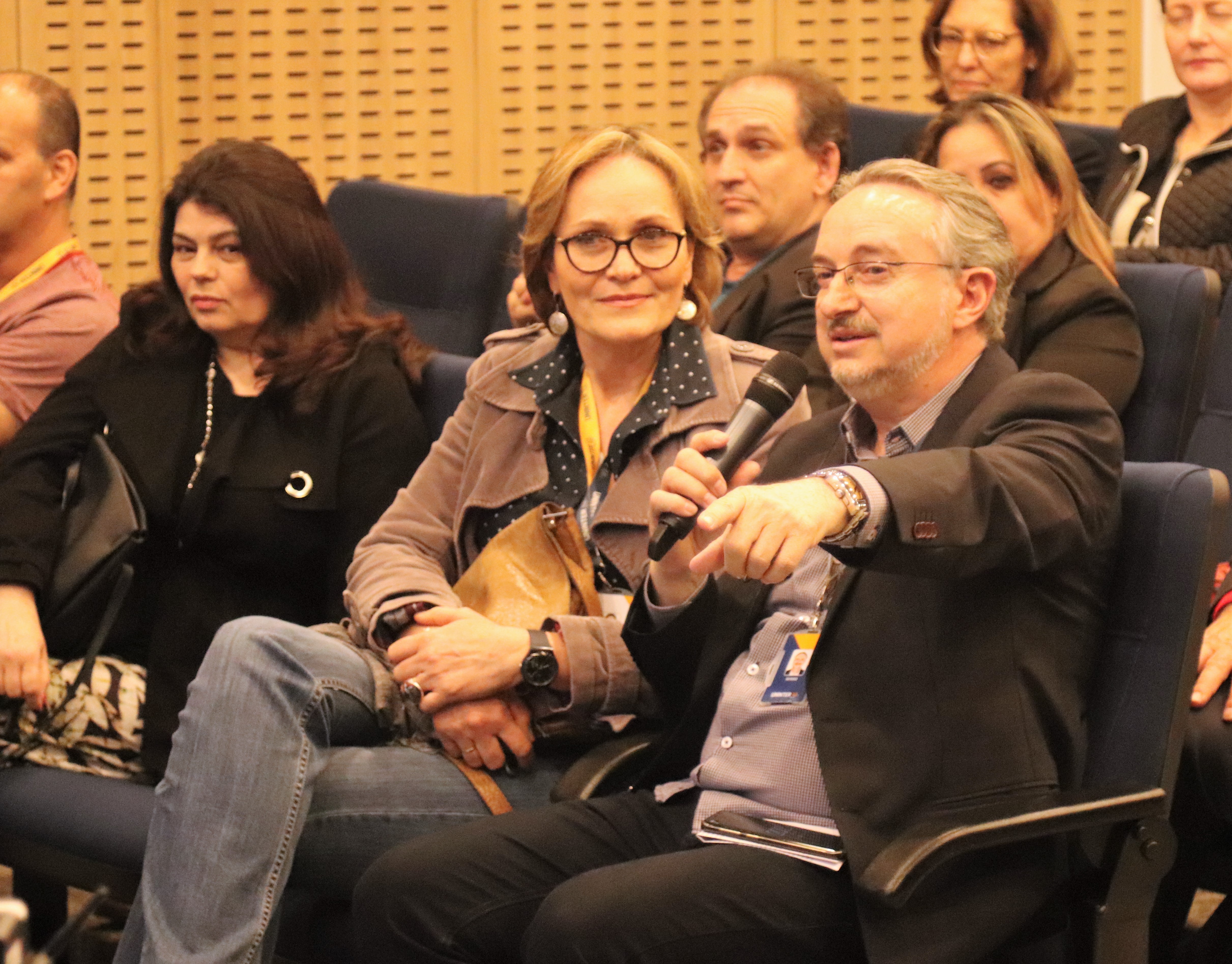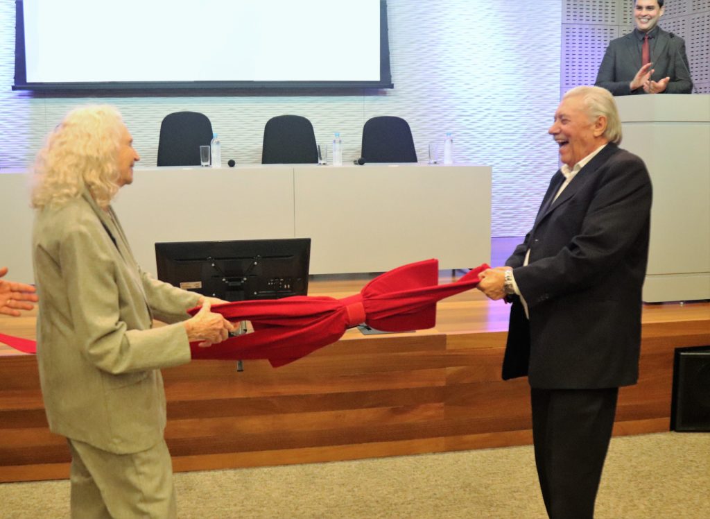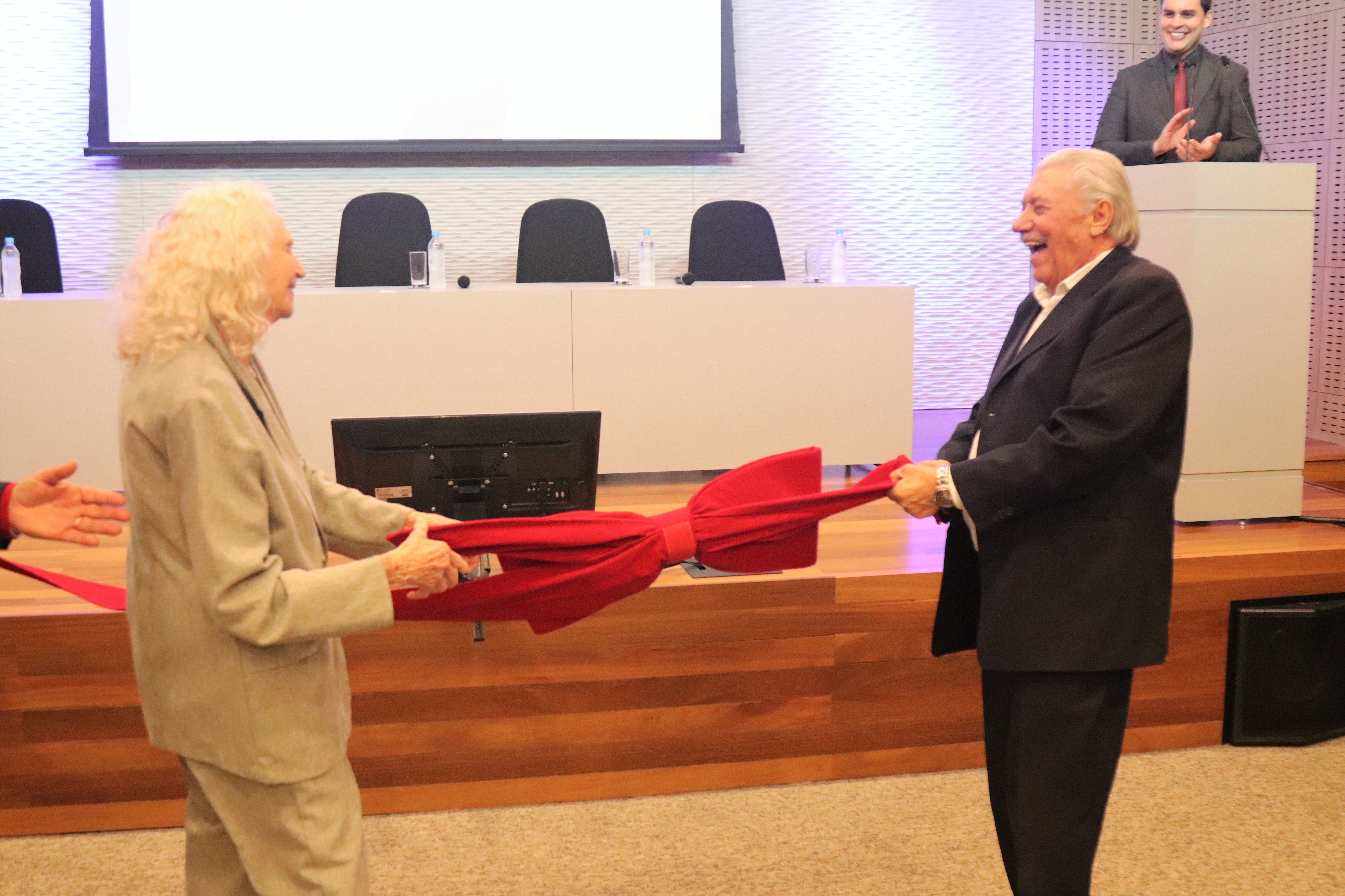 Junto a Wilson e Edmilson, sentado à mesa, estava o patriarca da família Gabriel Picler, também integrante da Diretoria Executiva do Grupo Uninter. Na plateia, a matriarca, Margareth Picler. O casal descerrou a placa inaugural do auditório-estúdio.