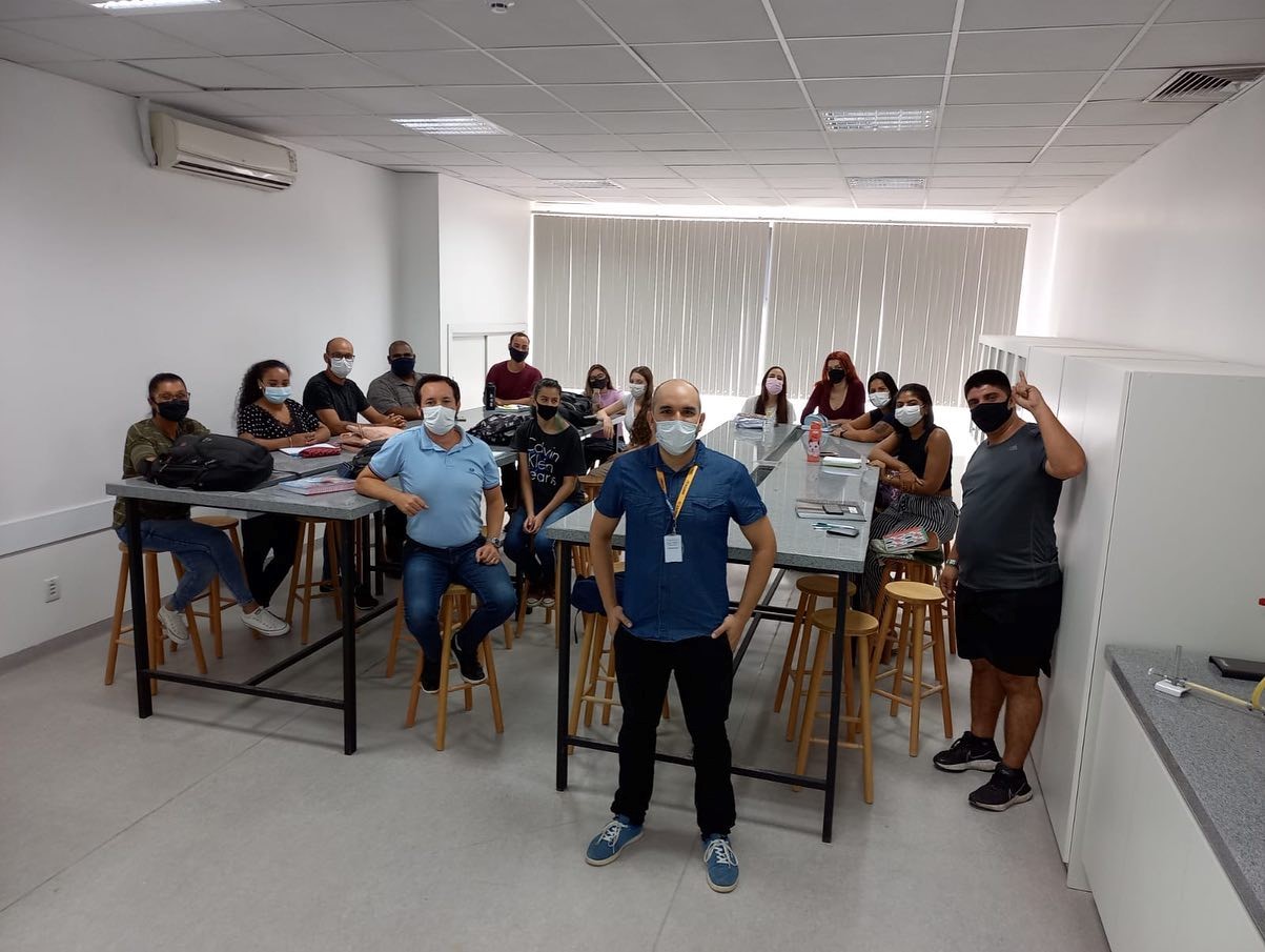 Na modalidade semipresencial dos cursos de saúde, os estudantes se deslocam uma vez por mês aos laboratórios para realizar as aulas práticas. São oito horas de atividades prática ao longo de um dia inteiro, que, juntamente com o estágio, compõem 40% da carga horária dos cursos, enquanto o restante das atividades é feito a distância.