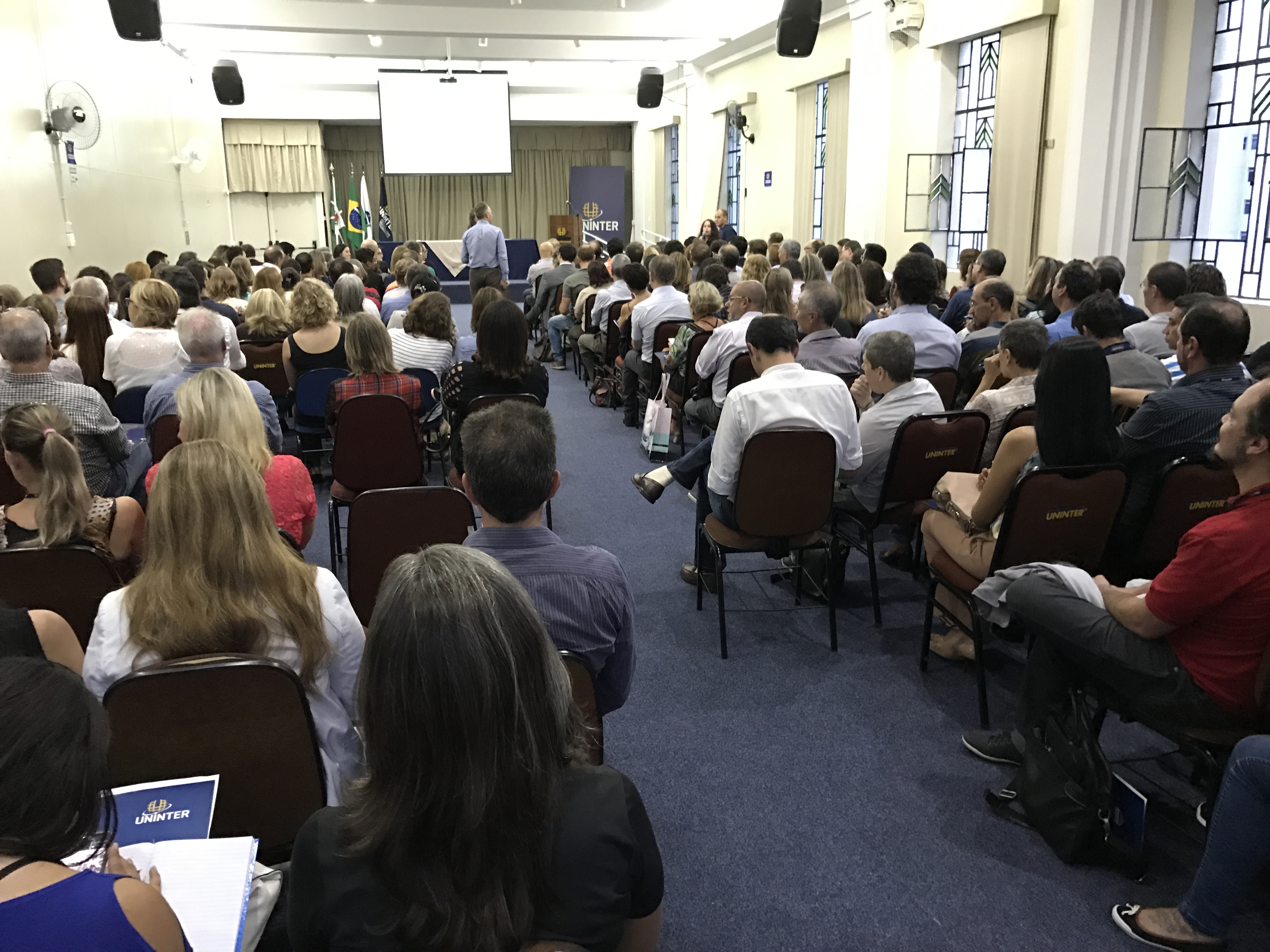 O Centro Universitário Internacional Uninter deu início ontem (1º) à sua Jornada Acadêmica que antecede o ano letivo. Professores de todos os cursos lotaram o auditório do campus Garcez, no centro de Curitiba, para a abertura da jornada que se estenderá até o dia 10 com palestras e oficinas de qualificação profissional. O reitor da Uninter, Benhur Gaio, apresentou alguns números que revelam porque a instituição tem ajudado a fazer a diferença na vida do país.