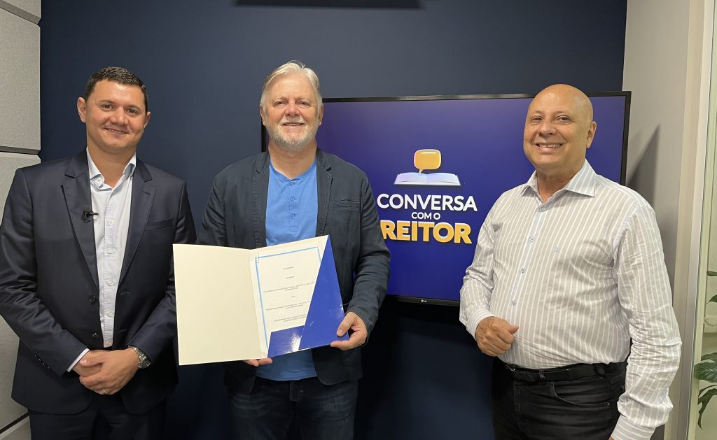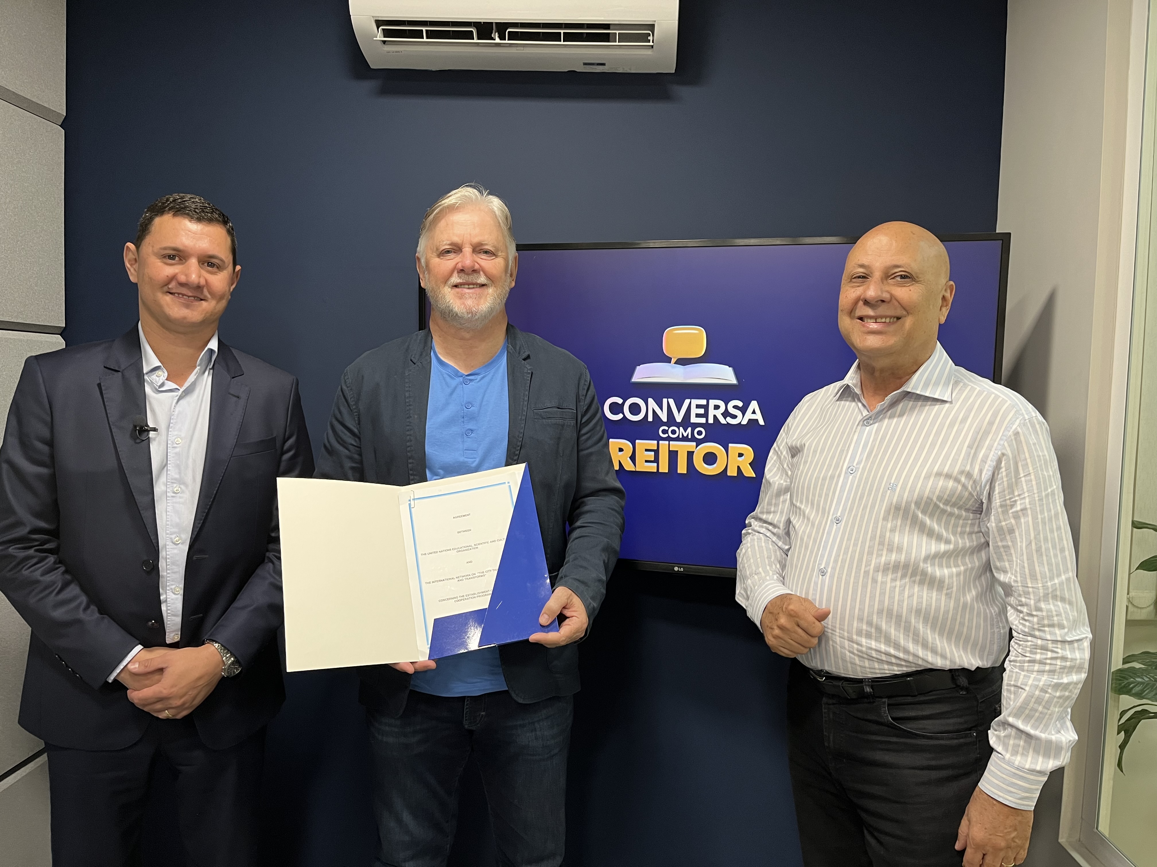 O documento de integração ao projeto foi apresentado pelo reitor da Uninter, Benhur Gaio, o pró-reitor de Pós-graduação, Pesquisa e Extensão, Nelson Castanheira, e o coordenador de cursos de pós-graduação Alceli Ribeiro durante o programa Conversa com o Reitor, transmitido pela Rádio Uninter em 14 de abril de 2023.