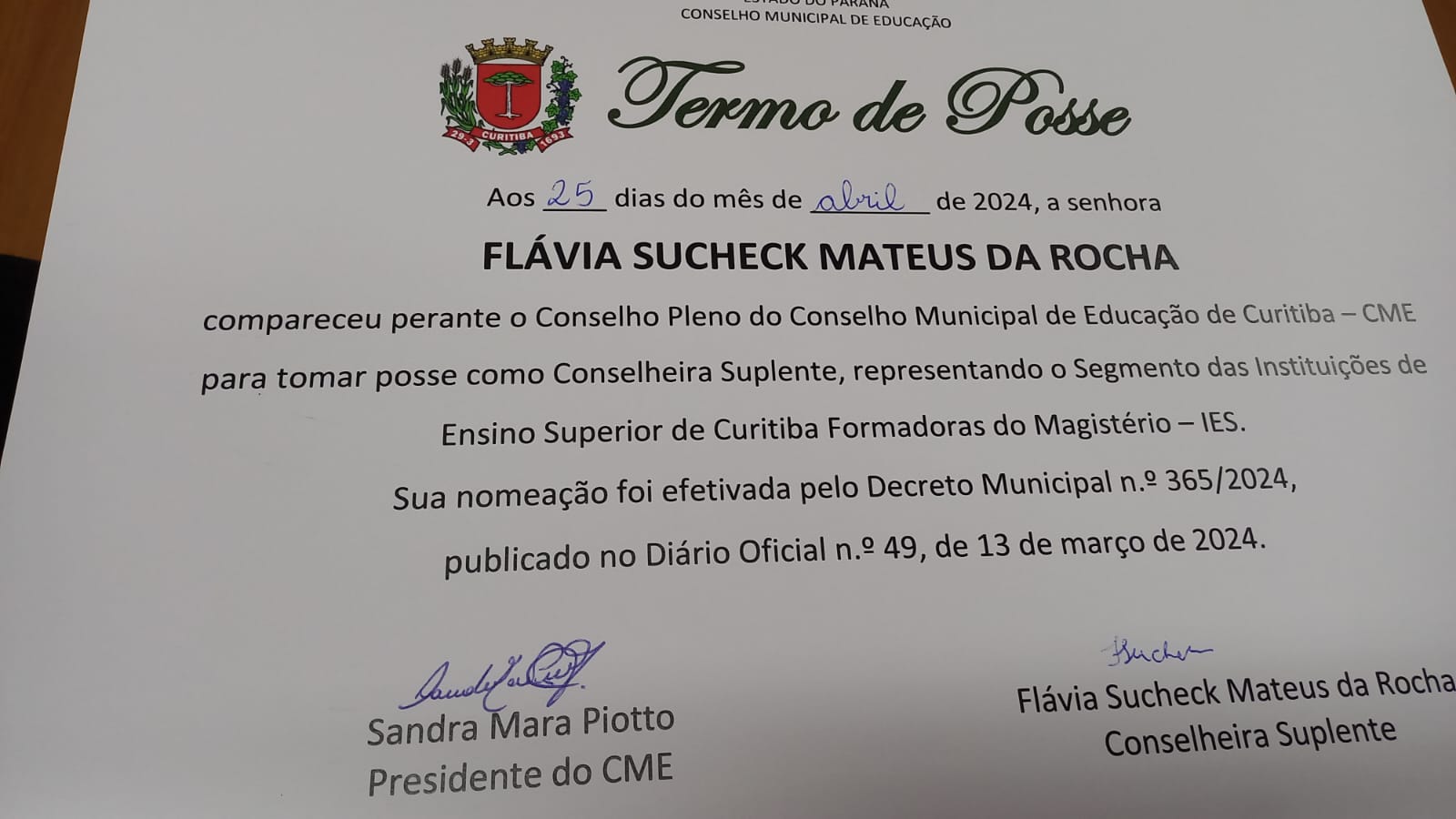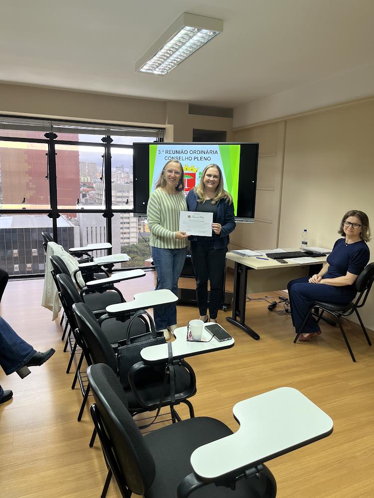 A professora tem auxiliado nos processos de correção e aprovação dos textos enviados a órgãos oficiais de diferentes instâncias, bem como analisado dados quantitativos e deliberações do Conselho, representando o setor de instituição de ensino superior de Curitiba.