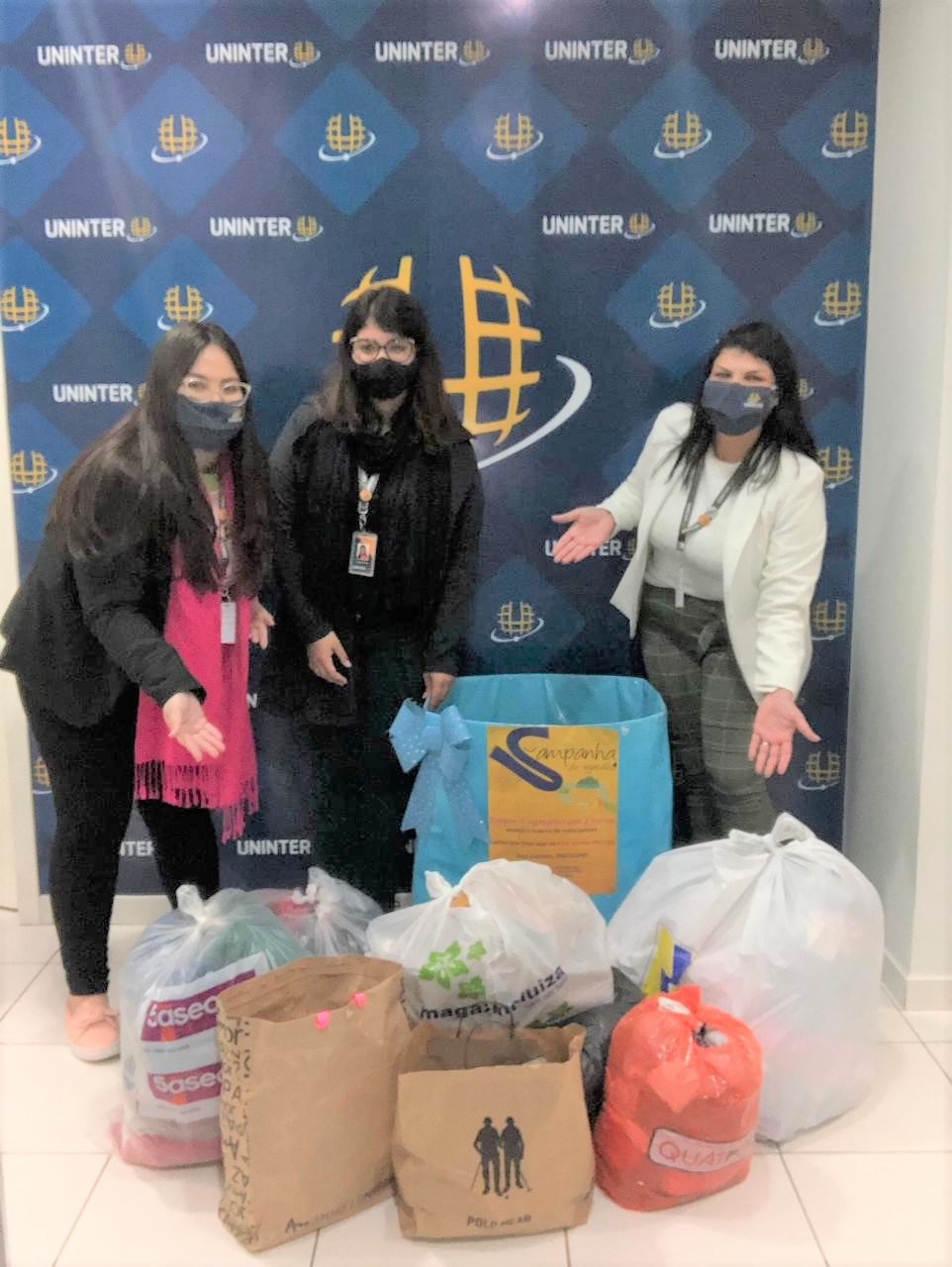 Sempre atento às necessidades locais e ativo em ações sociais, o polo de apoio presencial (PAP) da Uninter em Maringá (PR) realiza regularmente campanhas de arrecadações e doações para entidades assistenciais que mais precisam, como o Livros que alimentam e Livros que aquecem. No dia 28.jun.2021, a equipe iniciou mais uma campanha do agasalho, com duas semanas de arrecadação, para o Instituto Sendas, localizado na mesma cidade. “Como a arrecadação foi grande, logo doamos, pois estávamos em período de frio”, diz a gestora do polo, Diene Eire.