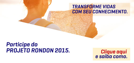 As inscrições do Projeto Rondon, operação Bororos, já estão abertas. Com destino ao município de Diamantino, no Mato Grosso, os alunos de graduação presencial e EAD, que tenham concluído no mínimo 50% da carga horária total do curso, podem fazer as inscrições até o dia 17 de abril de 2015.