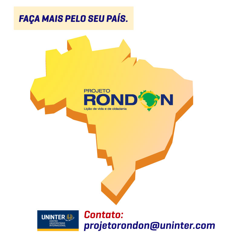 O projeto é uma iniciativa de integração social, promovida pelo Ministério da Defesa em parceria com instituições de ensino superior privadas e públicas, que incentiva o engajamento de estudantes universitários na construção de ações que contribuam para o desenvolvimento sustentável de comunidades carentes. “A participação da UNINTER demonstra o comprometimento da instituição em cumprir sua missão de agente transformador de realidades humanas”, comenta Celso Giancarlo Duarte de Mazo, Coordenador do Projeto Rondon UNINTER.