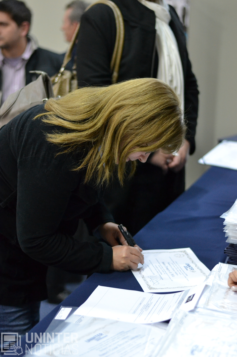 “O programa de acompanhamento de egressos tem vários benefícios, como: desconto em novos cursos realizados no UNINTER; oportunidade de participação na construção de novos cursos de extensão; possibilidade de colaboração para reestruturação dos cursos de formação e, assim, fazer a adequação ao mercado de trabalho, que muda constantemente”, afirmou a coordenadora do Programa Acompanhamento de Egressos, Adriana Reichle. Os alunos que compareceram ao evento foram presenteados com um curso gratuito de extensão sobre Administração do Tempo, ministrado pelo coordenador e professor Claudio Aurélio Hernandes. Eles também puderam registrar gratuitamente fotos com os seus diplomas. Ao todo foram 250 habilitações entregues.