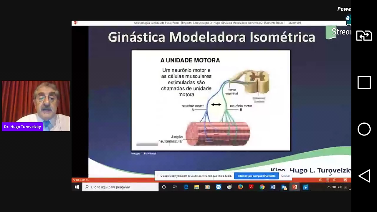 A conferência foi dividida em duas partes. Na primeira, Hugo falou da ginástica modeladora isométrica, que é um método de combate à flacidez muscular. Essa é uma ginástica que o fisioterapeuta faz na maca da própria clínica. E na segunda parte foi abordada a base científica do 15º Congresso Internacional de Estética e Cosmetologia, presidido por Hugo, que vai acontecer este ano na Expo Center Norte, em São Paulo, em data ainda incerta.