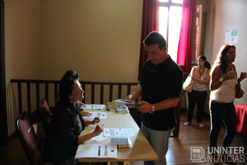 A equipe de Serviço Especializado em Engenharia de Segurança e em Medicina do Trabalho (SESMT) deu início à programação do dia com os exames periódicos dos docentes. Em seguida, os professores foram recepcionados pela equipe da Coordenação Pedagógica, em que receberam um livro de Celso dos S. Vasconcellos, Construção do conhecimento em sala de aula, e, também, um kit contendo caneta e bloco do Grupo UNINTER.