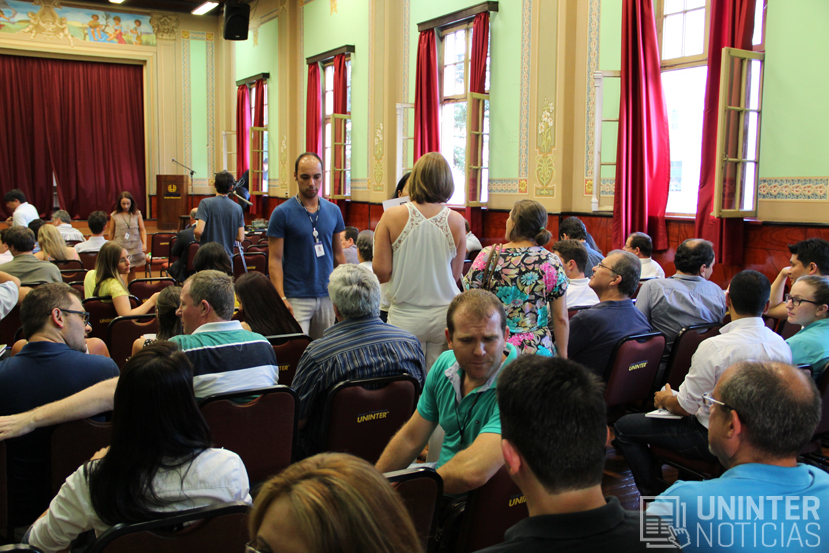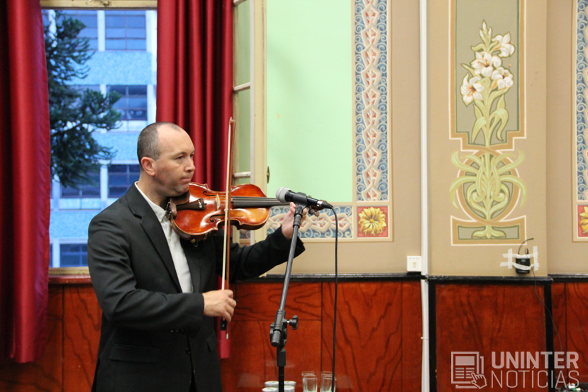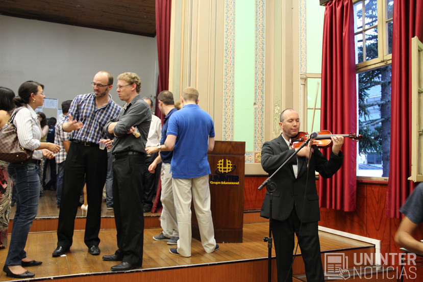 A segunda etapa do evento teve a participação da Reitoria, com o tema Gestão Institucional Integrada, em que a coordenadora pedagógica, Inge Renate Suhr, passou a palavra ao Pró-reitor de Graduação e Extensão, Nelson Castanheira. Ele falou sobre a importância do ensino com qualidade, referindo-se às notas dos cursos avaliados pelo MEC/INEP. Comentou, ainda, sobre o papel do docente no espaço universitário, como “um ambiente de transformação social e de difusão de valores humanos”. Segundo a professora Edna Liz Prigol, da equipe de Educação Corporativa, houve um momento de reflexão sobre o comportamento do professor em sala de aula, que foi representando pelo ator Guga Cidral. A professora relatou que a intenção da encenação foi instigar os docentes a respeito dos diversos comportamentos. Em seguida, teve um momento de intervalo com a participação do acadêmico de Direito, Edilson Fernandes, que prestigiou os presentes tocando violino.