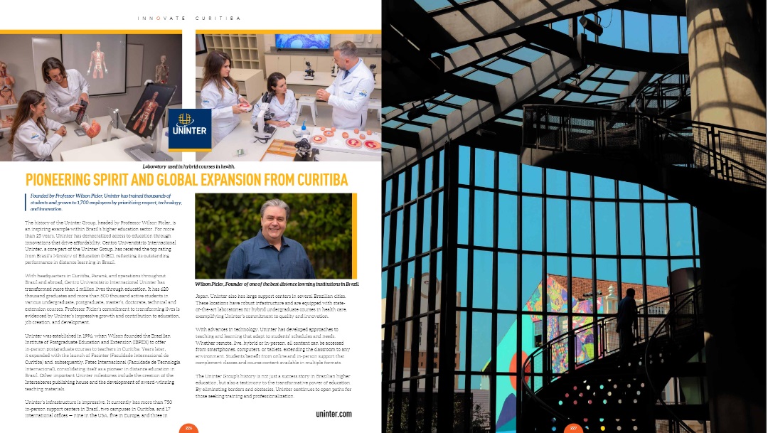 Este ano, a Uninter foi destaque no livro Innovate Curitiba, que integra o projeto internacional Innovate World conduzido pela Global Village Publishing. O projeto visa à divulgação de lugares de inovação e cidades inteligentes ao redor do mundo.  Curitiba é a pioneira da América Latina a fazer parte dessa plataforma, que já promove outras 60 cidades de sucesso em inovação como Dubai, Toronto e Chicago.