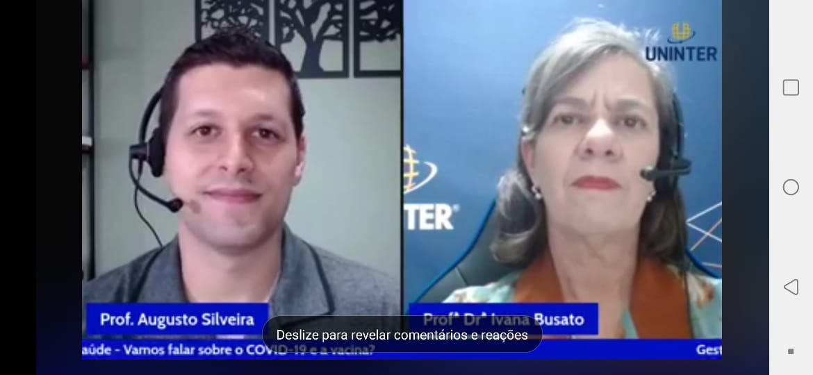 Para desmistificar o assunto e falar da importância da vacina contra a Covid-19, o professor Augusto Silveira, do curso de Gestão em Vigilância em Saúde, convidou a coordenadora do curso de  Gestão em Saúde Pública da Uninter, professora Ivana Busato, para debater o assunto.