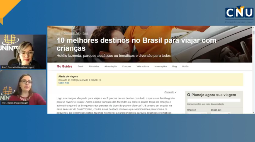 Karen e Grazielle, que são professoras do curso de tecnologia em Turismo da Uninter, falam sobre opções de destinos turísticos pelo Brasil para passear com os pequenos. No estado de Minas Gerais a opção são os hotéis fazenda, com passeios a cavalo e um local tranquilo para estar com a família próximo da natureza. Em São Paulo, o interior do estado também oferece opções de maior contato com a natureza, com atividades ao ar livre como colher frutas diretamente no pé e realizar passeios na mata.