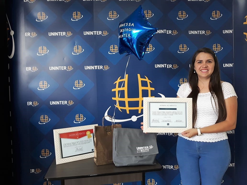 Vanessa se mostra satisfeita com o ensino e com a preocupação que a Uninter tem com seus alunos: “A Uninter é muito importante, bem organizada e se preocupa com os alunos. Tenho orgulho de poder estudar aqui.” Para recompensar suas notas e esforço, além do certificado de honra ao mérito, ela também recebeu um kit com balão personalizado, chocolate, copo com canudo, entre outros brindes.