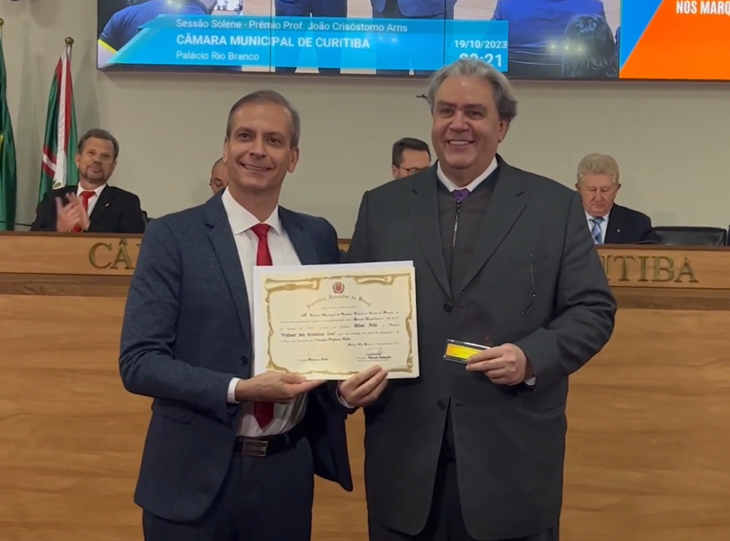 A Câmara Municipal de Curitiba realizou, na noite de 19 de outubro de 2023, uma sessão solene para a entrega do Prêmio João Crisóstomo Arns, que reconhece personalidades locais que se destacam nas áreas ligadas à cultura e educação. Entre os homenageados esteve o fundador e chanceler do Grupo Uninter, Wilson Picler, que foi reconhecido por sua contribuição à educação de Curitiba e do Paraná.