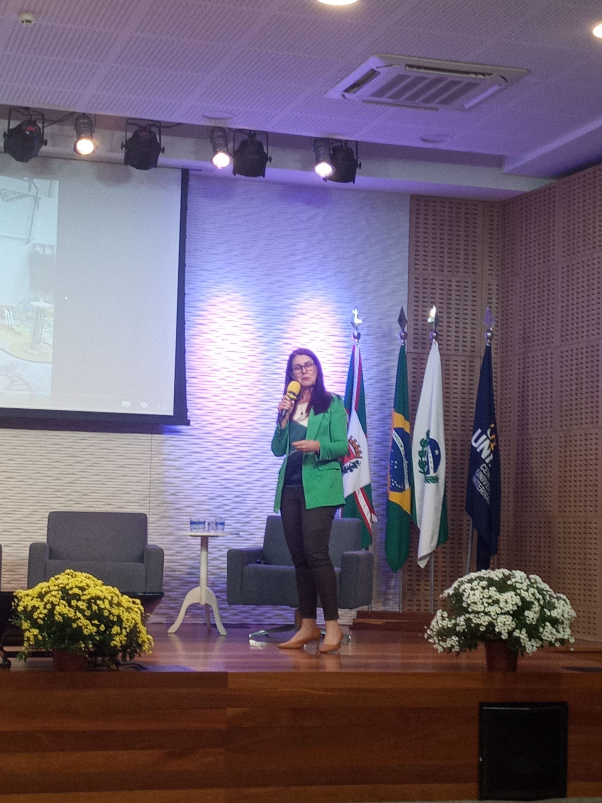 O evento contou com a prof.ª Dra. Desiré Luciane Dominschek Lima como cerimonialista, que coordenou a apresentação da programação do evento de forma exemplar.