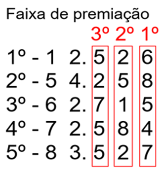Os ganhadores de cada premiação serão conhecidos mediante a combinação dos números de cima para baixo segundo a imagem colocada acima.
