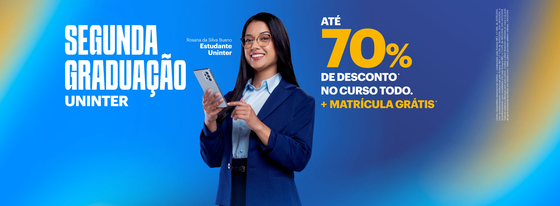 Na Uninter, fazer uma segunda graduação é mais do que acumular conhecimento. É evoluir profissionalmente, ampliar as possibilidades de carreira e, de quebra, garantir até 70% de desconto nas mensalidades.